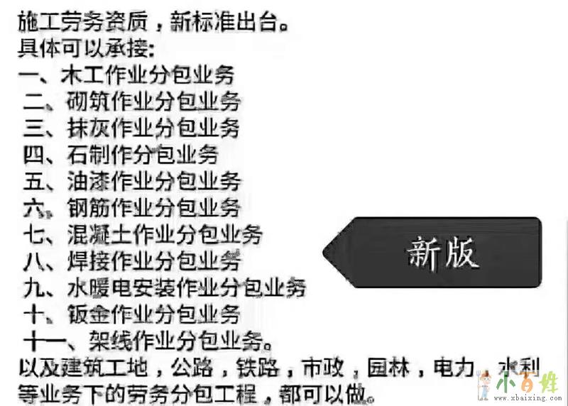 劳务资质承接的范围更多更广!原文www.xbaixing.com
