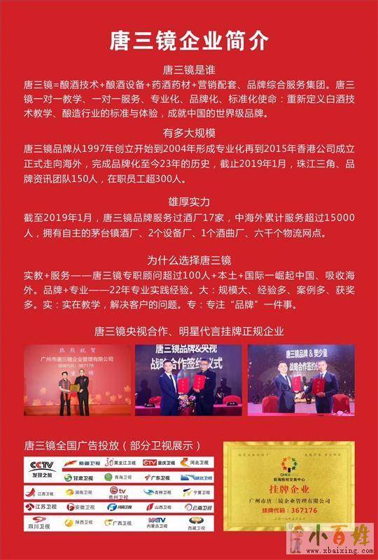 唐三镜真全粮提供酿酒技术、酿酒设备,唐三镜与其它酒械公司的区别在哪里欢迎www.xbaixing.com。许多其它酿酒设备公司里面提供不了全面的技术,很多公司只提供设备不给学员做售后服务而且不教技术,又或者技术不先进,瓶装酒的技术都是添加香精香料等。原文www.xbaixing.com。。www.xbaixing.com小百姓网。。而唐三镜真全粮所教学的酿酒技术全都是纯粮食酿造,连瓶装酒香型等技术都是不添加香精香料纯粮食酿造,唐三镜拥有自己的实体酒厂,所教学的技术都是酒厂的配方技术,做出来的酒都是达到国家标准,提供所有质检报告供学员参考www.xbaixing.com小百姓网。